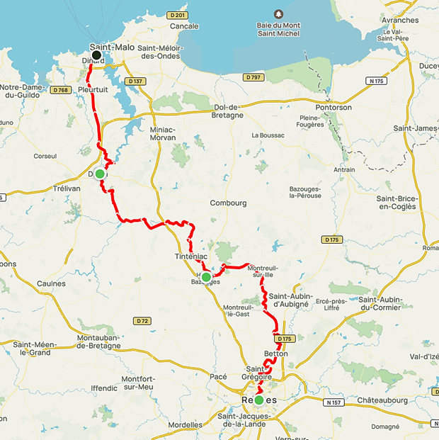 Vous rejoignez le charmant village de Taden dont le site originel remonte à la préhistoire. Vous empruntez ensuite une ancienne voie ferrée pour relier l’élégante station balnéaire de Dinard et ses villas « Belle Epoque ». Le bateau-bus vous permet de rejoindre la cité corsaire de Saint-Malo.