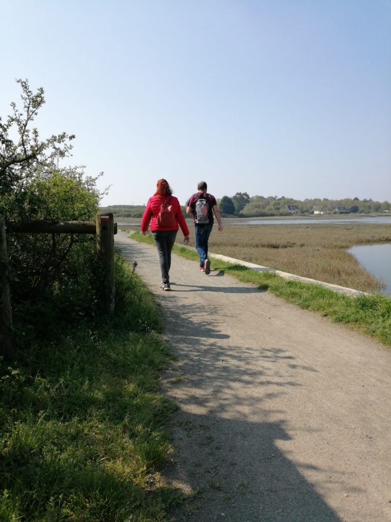 Transfert vers la commune de Baden, la randonnée longe la rivière d’Auray, l’étang de Toulvern et ses parcs ostréicoles (dégustation possible), la Pointe de Locmiquel et enfin le port ostréicole de Larmor Baden.