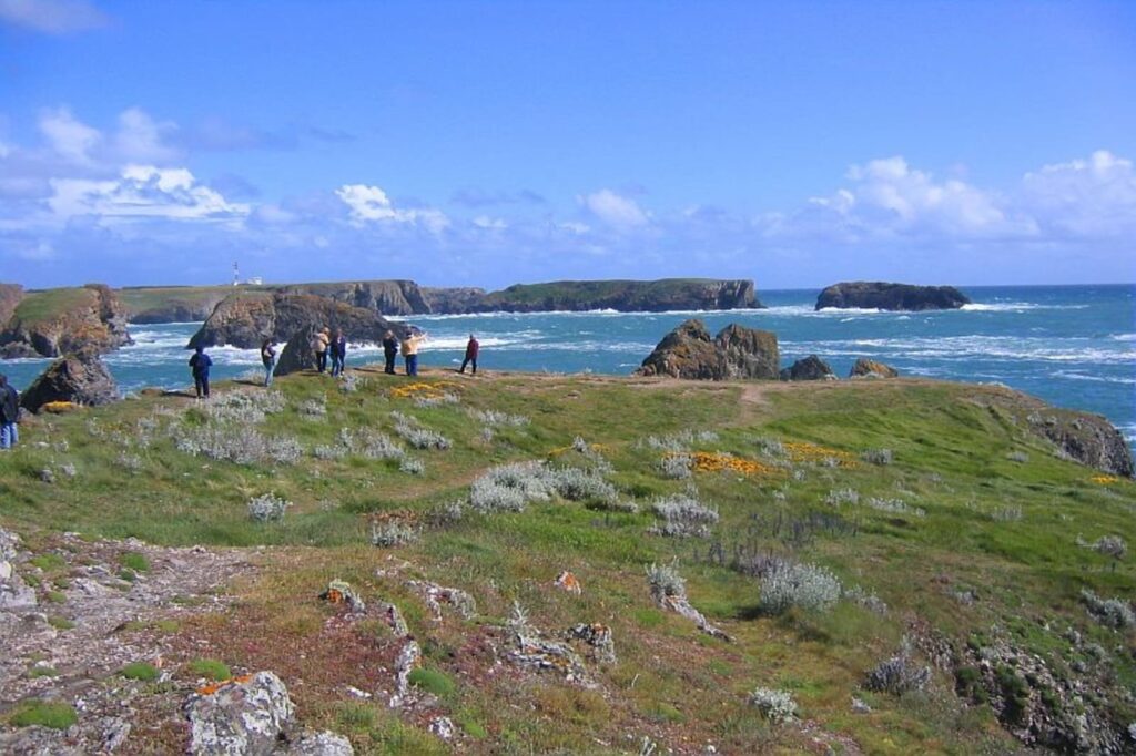 Vous longez une côte sauvage où prospèrent oiseaux marins et landes fleuries, avant d’admirer les spectaculaires Aiguilles de Port Coton, chères aux impressionnistes, et le Grand Phare.