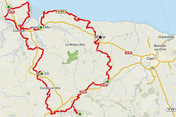 Vous rejoignez Isigny-sur-Mer, réputée pour ses spécialités gourmandes : crème, caramels, huîtres et coquilles Saint-Jacques. L’étape traverse aussi des lieux chargés d’histoire avec le cimetière américain de Colleville-sur-Mer et Omaha Beach.