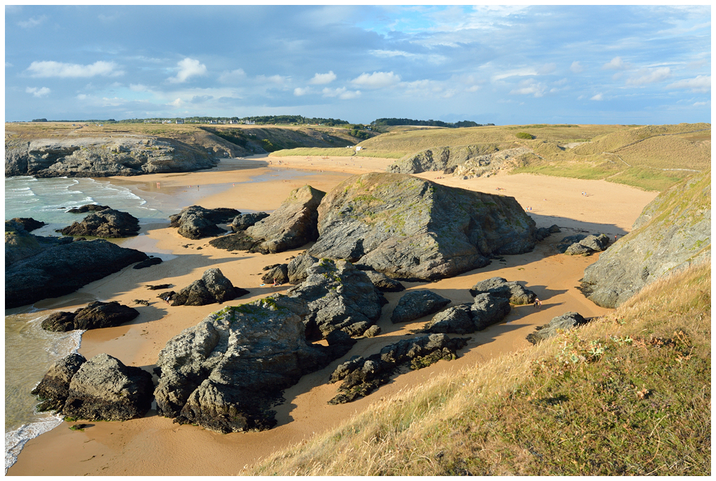 Randonnée le long la côte « en dedans ». La pointe de Kerdonis offre alors un panorama sur les petites îles de Houat et Hœdic. Puis, la longue plage des Grands Sables nous invite à la baignade. Traversée retour pour la presqu’île de Quiberon en fin de journée.